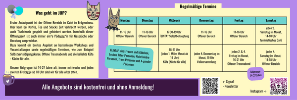 1. Woche JUP-Café ab 15 Uhr geöffnet